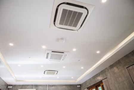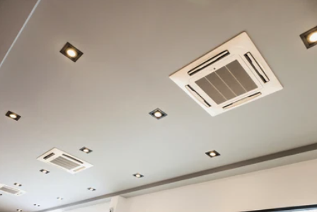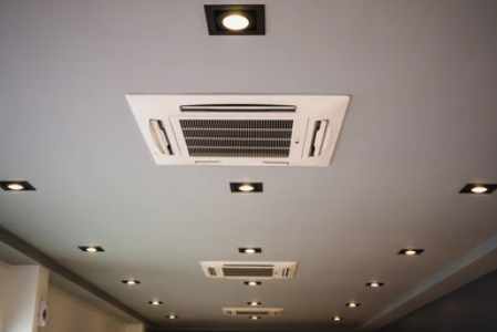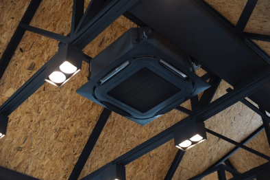 Equipos tipo Cassette instalados en locales comerciales y restaurantes, aprovechando su gran caudal de aire y diseño compacto para mantener el confort sin ocupar espacio en paredes.