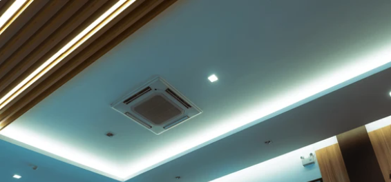 Sistemas por Conductos en chalets y oficinas, integrados en falsos techos con rejillas decorativas, logrando una distribución uniforme del aire y un funcionamiento silencioso.