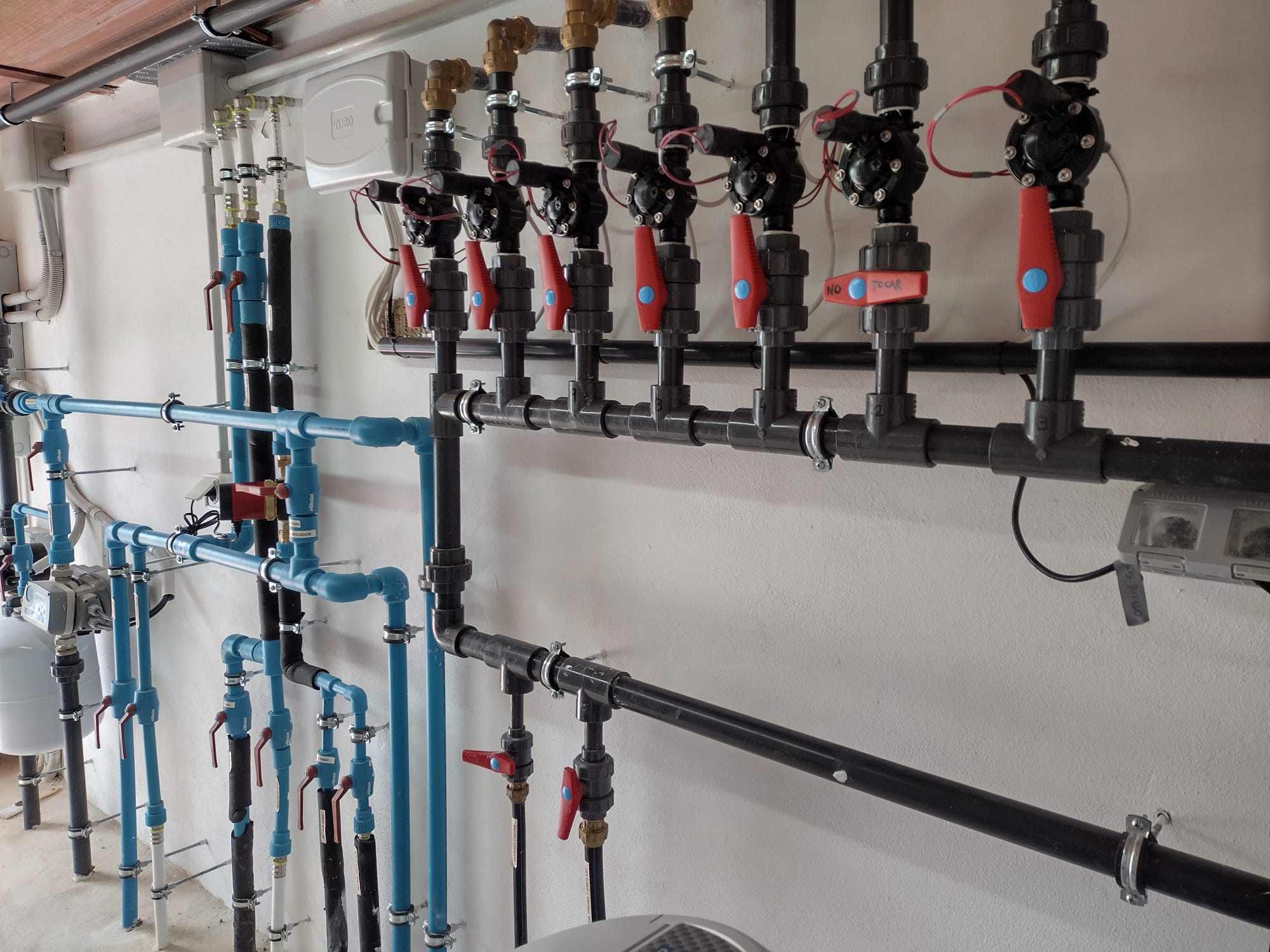Red de tuberías y válvulas de corte: permiten un fácil mantenimiento y un funcionamiento óptimo del sistema.