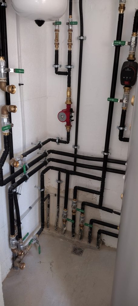 En este proyecto hemos realizado una instalación completa de calefacción con bomba de calor para suelo radiante, acompañada de un acumulador de agua caliente sanitaria (ACS) y un depósito de inercia, asegurando el máximo confort y eficiencia energética en la vivienda.